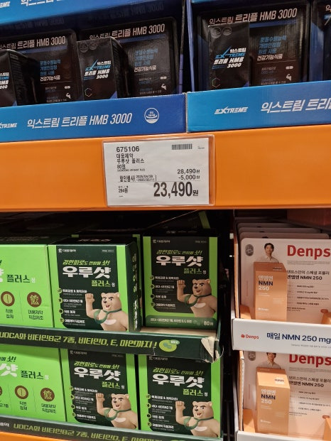 이 모든 제품들이 할인 중이었고, 진열대에서 제품을 들고 비교하거나~